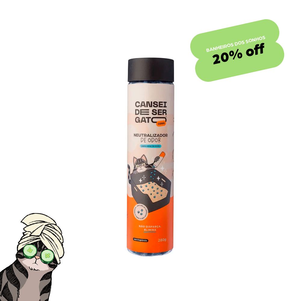 O Neutralizador de Odores Cansei de ser gato não apenas disfarça cheiros, mas elimina completamente os odores provenientes de qualquer tipo de granulado. Graças à sua tecnologia avançada, que desintegra a amônia e reduz as partículas no ar, ele mantém o ambiente fresco por mais tempo, sem a adição de fragrâncias artificiais. Não faz poeira e é eco-friendly :)